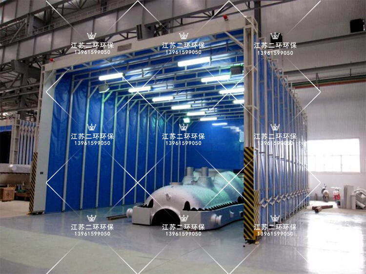 7、對於較大的打磨拋光工件,要考慮到行車叉車的搬運方便,因此可以搭建移動式的伸縮帆布房子。打磨拋光時展開,吊裝時收縮起來。