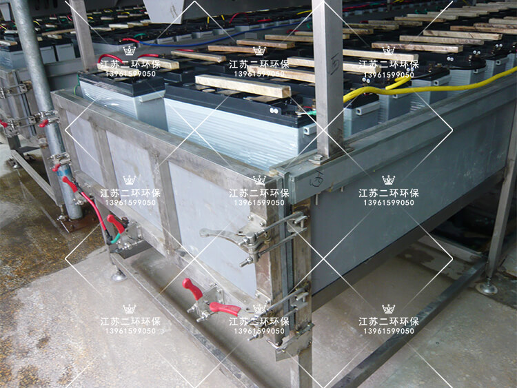 車間地麵澆築防酸水泥,表麵做好環氧或者采用耐酸瓷磚鋪設。水槽基礎采用水泥澆築,外表采用45膠環氧玻璃鋼防腐,水槽基礎高於地麵25厘米左右,是為了一旦有酸液外流,可以快速的流到地麵,而不會影響水槽基礎。水槽基礎的兩頭設有水溝,且地麵做有水法,一頭高一頭低,輕微的坡度,這樣做的目的是為了流到地麵的酸液能快速的排入汙水溝中,同時方便地麵衝洗快速集水,盡量保持地麵幹燥整潔,保護地麵的使用壽命。水槽采用PP塑料板焊接而成,槽內裝置有冷卻循環水進水口,當電池極板浸泡酸液時,產生的酸霧有槽體上部的吸罩匯總收集,然後通過管道,由引風機抽出到室外的酸霧在线观看视频麻豆塔進行酸堿中和化學反應,中性的氣體經過填料在线观看视频麻豆後排入大氣。汙水需要定期排放,排入到工廠的汙水處理係統集中處理。
