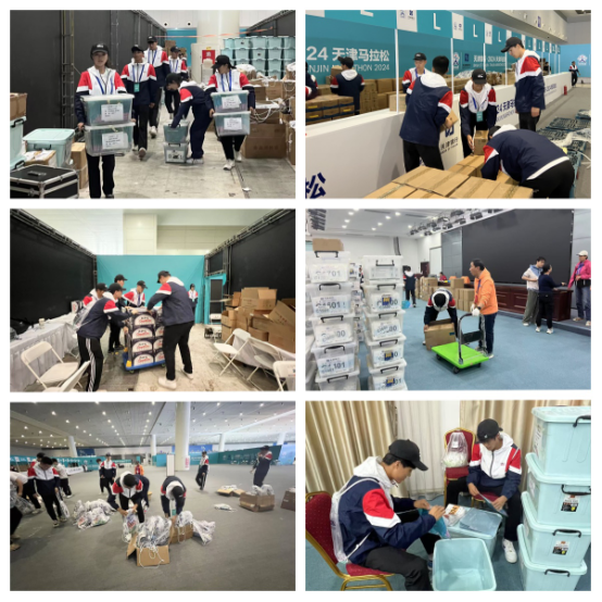 物品发放会现场,学院青年志愿者活跃在各个点位👩🏽🚀。从会场布置、号码布分装发放、选手完赛物资的分装🤺,到内外场引导、身份核验、芯片核验、物资装包发放、资料运输、人脸识别核验,处处闪现着他们忙碌的身影,志愿者们发挥专业所长,秉承热情周到、细致耐心的服务理念为选手们顺利参赛提供保障,展现了天津青年青春蓬勃的朝气和良好精神面貌。