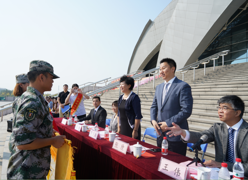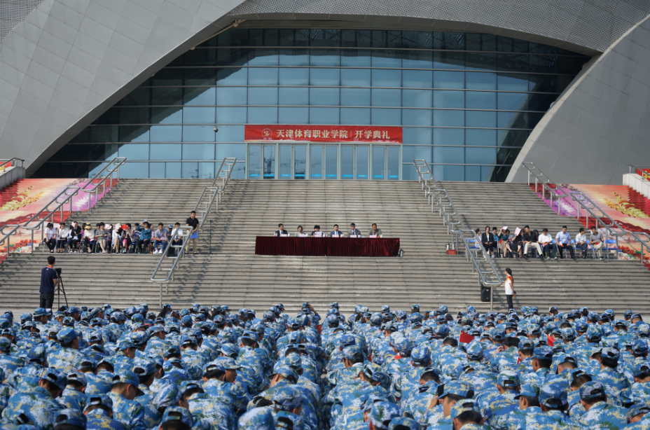9月30日上午🙋🏻♂️,体职院2019级新生开学典礼暨军训汇报表演汇演在团泊体育中心自行车馆前广场隆重举行。市体育局党委书记、局长李克敏,市体育局党委委员💻、副局长张欣✩,市体育局宣教法规处处长雷静ℹ️,天津仪仗精英军事训练基地主任于祥杰及学院领导班子成员出席典礼👩🏿🎨,学院全体教职员工和2019级全体新生参加。典礼由院党委书记王伟主持。