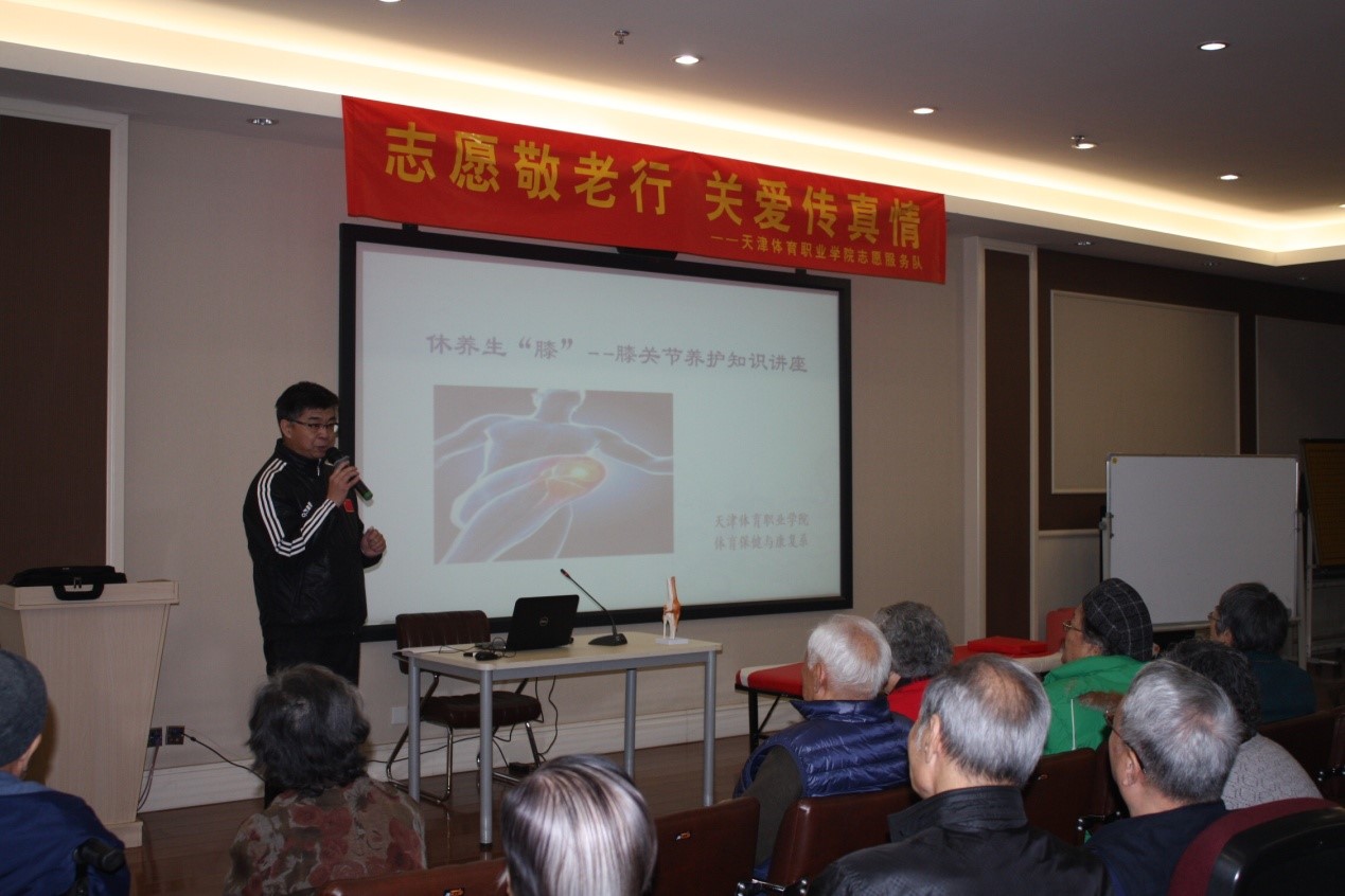 12月3日上午🧓🏼,按照天津市第十一届社区教育展示周,暨2017年天津市全民终身学习活动周的工作要求,学院领导高度重视,亲自带队并部署工作,经办公室组织协调,体育保健与康复系的师生到位于静海区的康宁津园老年公寓举办《休养生“膝”——老年人膝关节养护知识》主题讲座,为老年人讲解关于膝关节养护知识💉👼🏻,带领他们实践操作并解答健康难题。