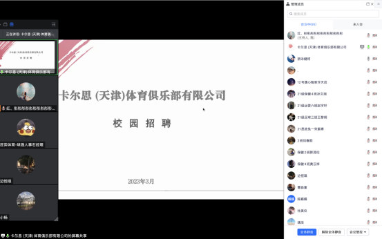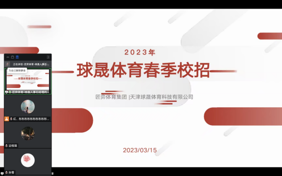 为做好我院2023届毕业生就业服务工作,构建毕业生与企业的交流平台。3月15日上午,我院特邀天津球晟体育科技有限公司👰🏽♂️、卡尔斯(天津)体育俱乐部有限公司、天津市豪邦篮球俱乐部是三家企业负责人在腾讯会议平台为2023届毕业生进行线上宣讲👩🏿🦰。
