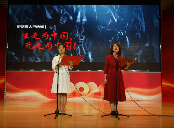 学院党委书记杨军👼🏽、学生处教师王慧朗诵《中国共产党百年述职报告》