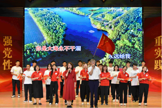 学院党委书记杨军、党委副书记、院长王伟带领思政课部教师和学生献唱歌曲《我和我的祖国》