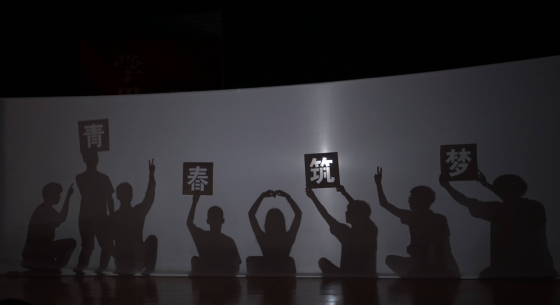 教师李文学✋🏿、韩晓宁、唐家阁与学生合唱《青春》